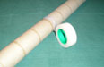 Ja ho tenim tot a punt per posar l’arròs a dins del tub, però primer haurem de tapar un dels extrems. Tallem una rodona de paper, la col•loquem en un extrem del tub i amb el celo l’enganxem, així ens quedarà tapada la sortida i no se’ns escaparà l’arròs.