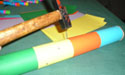 Ara podem clavar-hi els claus. Els hem de distribuir al llarg de tot el tub, de manera que quedin ben separats els uns dels altres. Aquesta operació serà millor